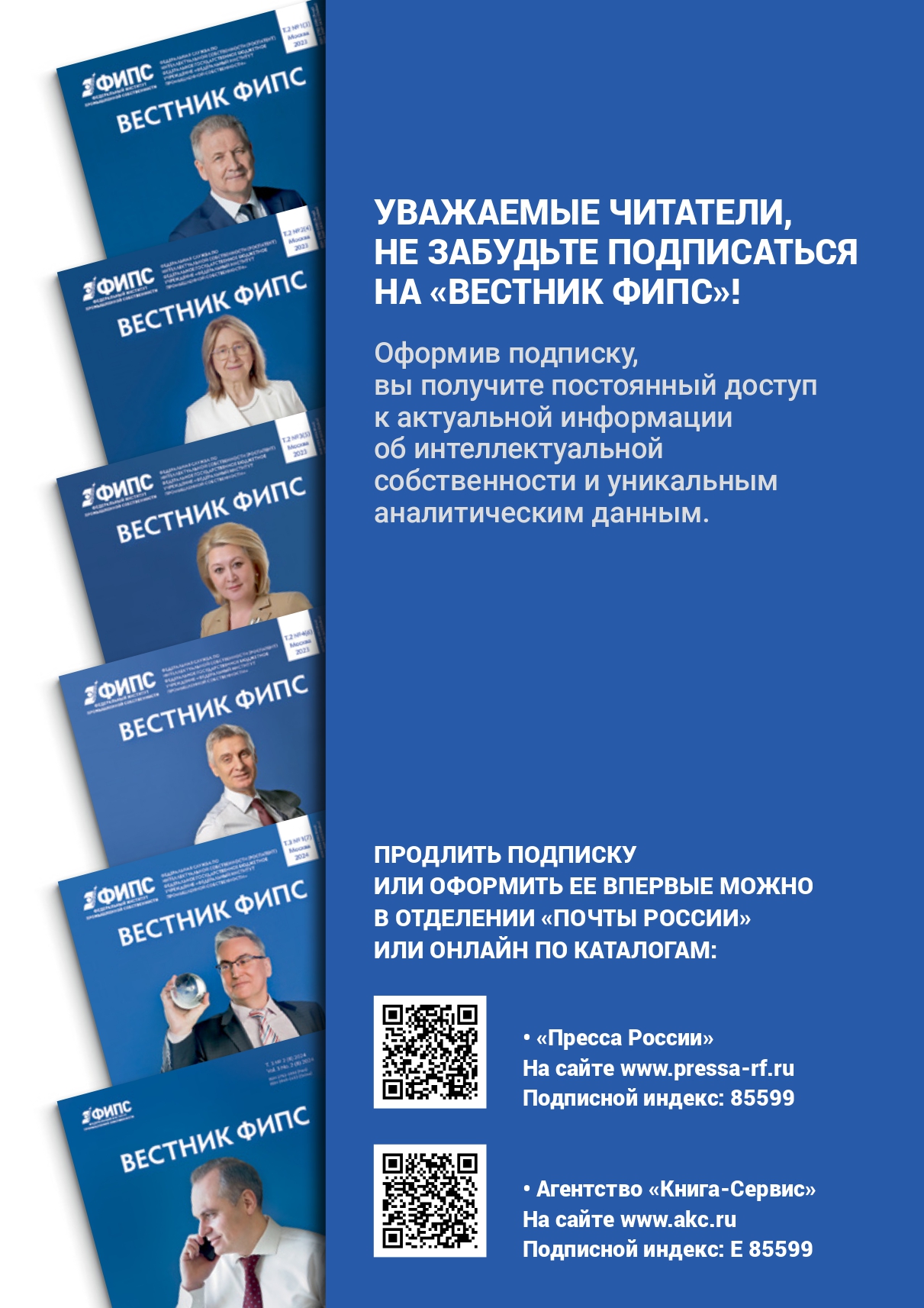Осуществить подписку журнала «Вестник ФИПС» на 2026 год можно через каталог «Пpecca по подписке» (