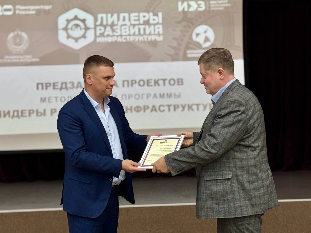 Директор АКИТ РФ Михаил Лабудин и исполнительный директор АНО ДПО «Институт экономики знаний» Юлия Артамонова вручили благодарности Волкову Петру Леонидовичу, исполняющему обязанности генерального директора, и Давыдовой Наталье Михайловне, заместителю генерального директора – директору по стратегическому развитию. Поздравляем коллег с наградами!